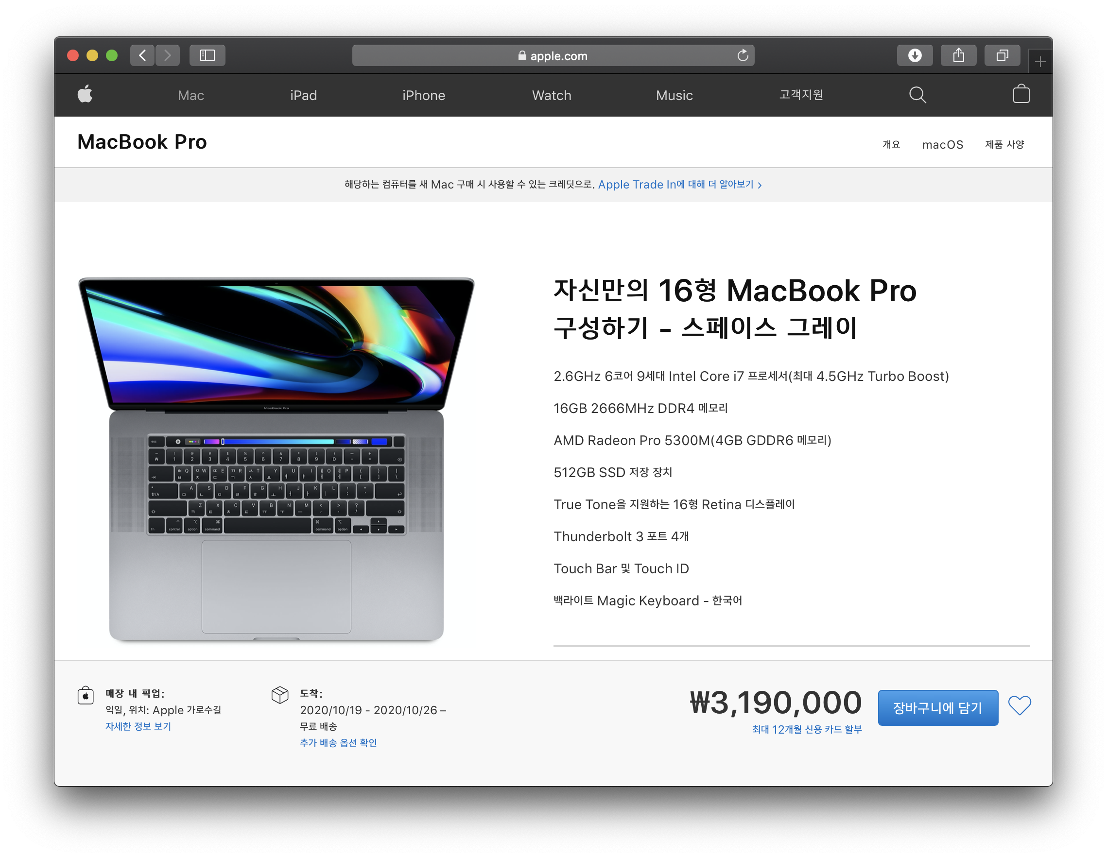 2019년도 맥북프로 16인치 기본옵션 및 가격 본문