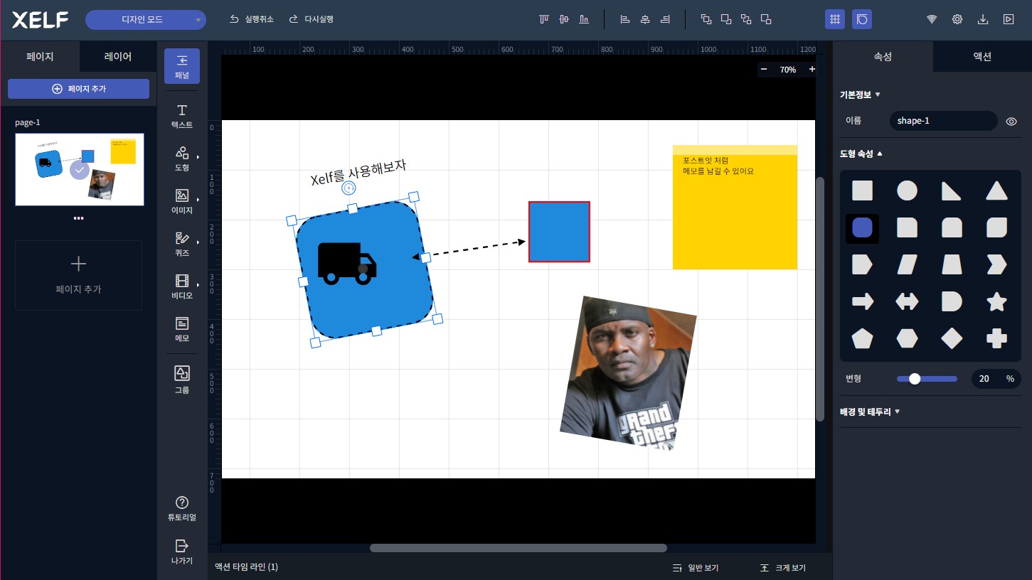 플래시 모션 트윈 정도의 단순 객체 액션도 지원한다.
