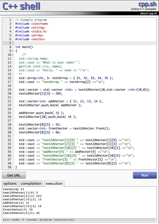 std::cout << "test2dVector[10][2] " << test2dVector[10][2] <<"\n";