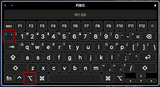 Clack 2021. 9. 15. 18:33키보드 입력이 '한글' 로 설정된 상태에서 숫자 1 왼쪽에 있는 키보드를 누르면
