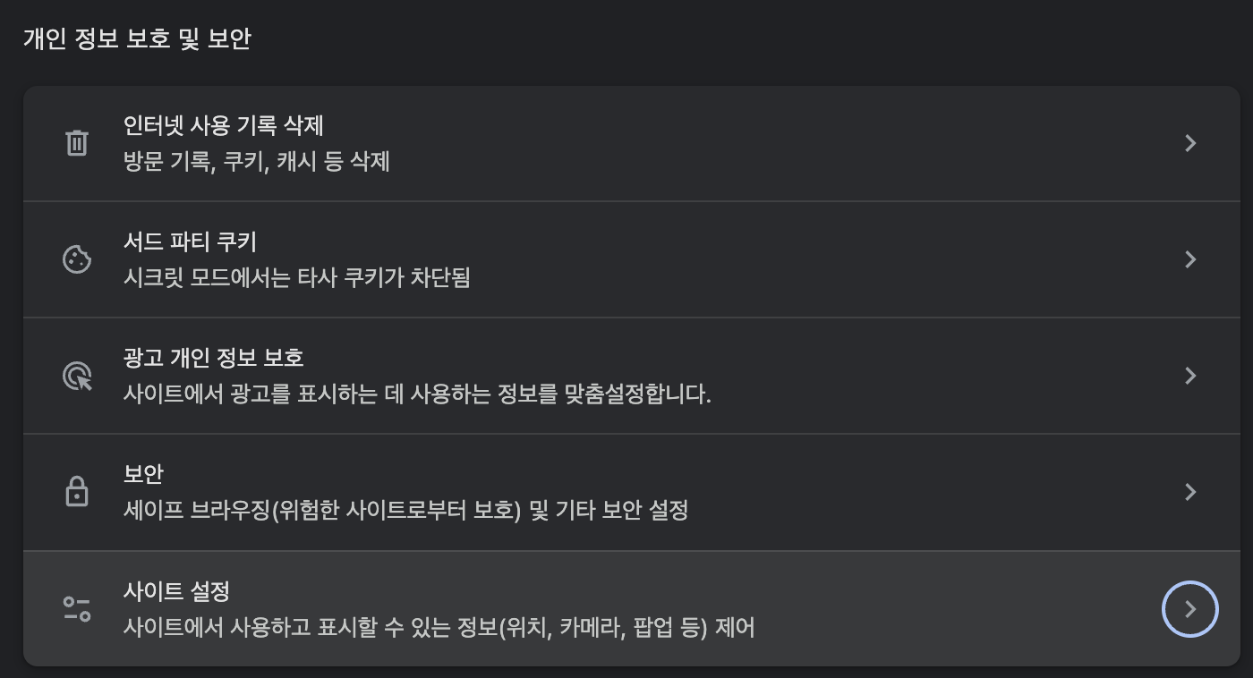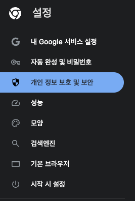 개인 정보 보호 및 보안 > chrome://settings/privacy