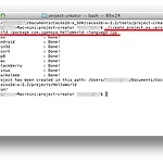 cocos2d-x 2.2 압축이 풀린 폴더에서 /cocos2d-x-2.2/tools/project-creator 로 이동하여 아래 문장을 입력하면프로젝트가 생성된다../create_project.py -project HelloWorld -package com.igemoya.helloWorld - language cpp↵ -project 옵션 뒤에는 '프로젝트이름' 을 입력하면 된다. 위의 예제에서는 프로젝트 이름을 'HelloWorld' 라고 정했다.-package 옵션 뒤에는 해당 프로젝트의 패키지명을 입력하면 된다. 위 예제에서는 'com.igemoya.helloWorld' 라고 입력했다.-language 옵션 뒤에는 어떤 언어로 작성할것인지를 입력한다. cocos2d-x 는 기본적으로 C++ 로 개..