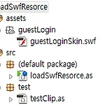 Source path에 assets 폴더를 추가했을 경우 assets 폴더 밑에있는 경로부터 URL에 입력 public class testClip extends Sprite { private var swfLoader: Loader; public function testClip() { super(); swfLoader = new Loader(); swfLoader.contentLoaderInfo.addEventListener(Event.COMPLETE, onSwfLoaded ); var loaderContext: LoaderContext = new LoaderContext( false, ApplicationDomain.currentDomain, null ); swfLoader.load( new URLReq..